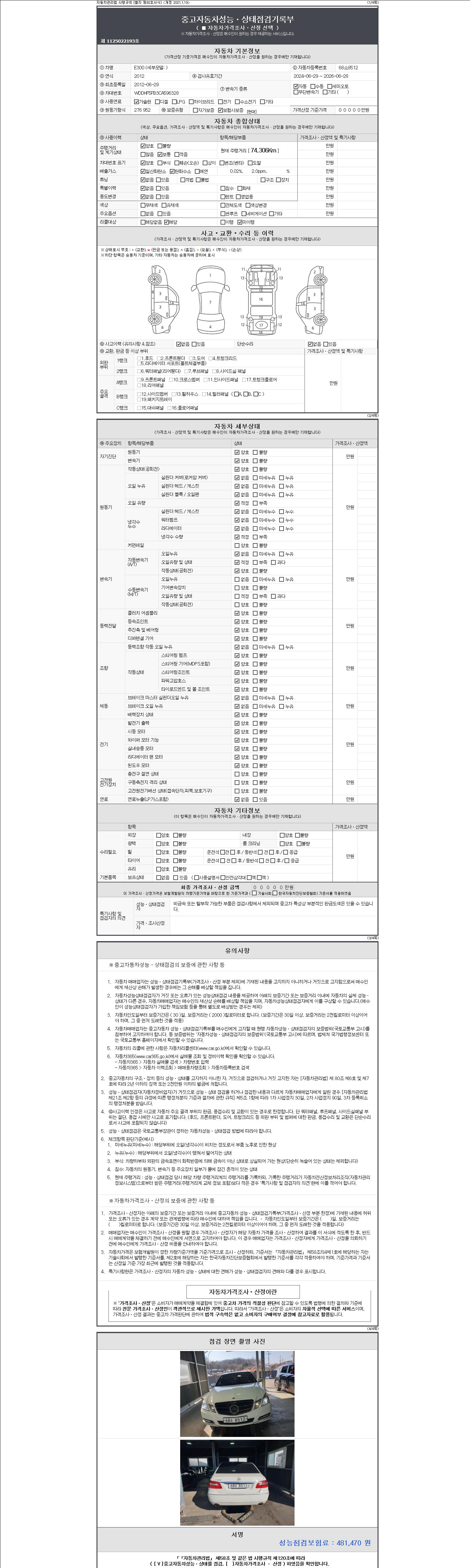 | 주행거리 | 74,306 km | 차량번호 | 68소8512 | 사고유무 | 성능기록부 참조 | 제시번호 | 제 2147483647 호 |