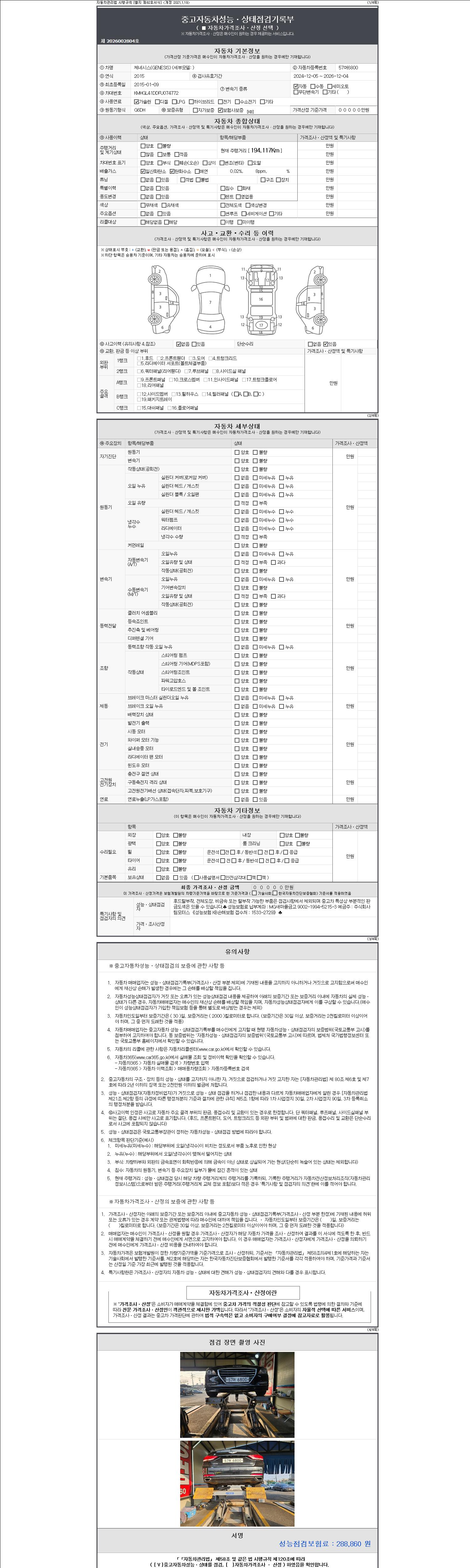 -중고자동차 매매업자를 통해 차량을 구입하실 경우 반드시 "중고자동차 성능, 상태점검 기록부"를 교뷰 받으셔야 하며, 매매업자는 반드시 의무 교부 하여야 압니다.