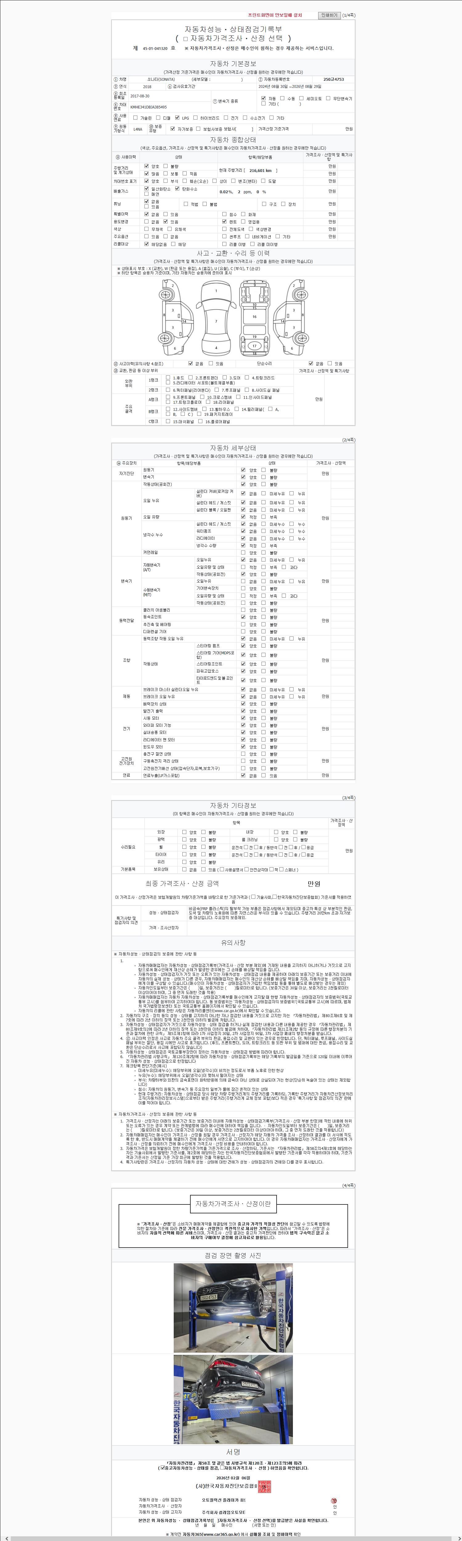 | 주행거리 | 216,601 km | 차량번호 | 250고4753 | 사고유무 | 성능기록부 참조 | 제시번호 | 제 2147483647 호 |