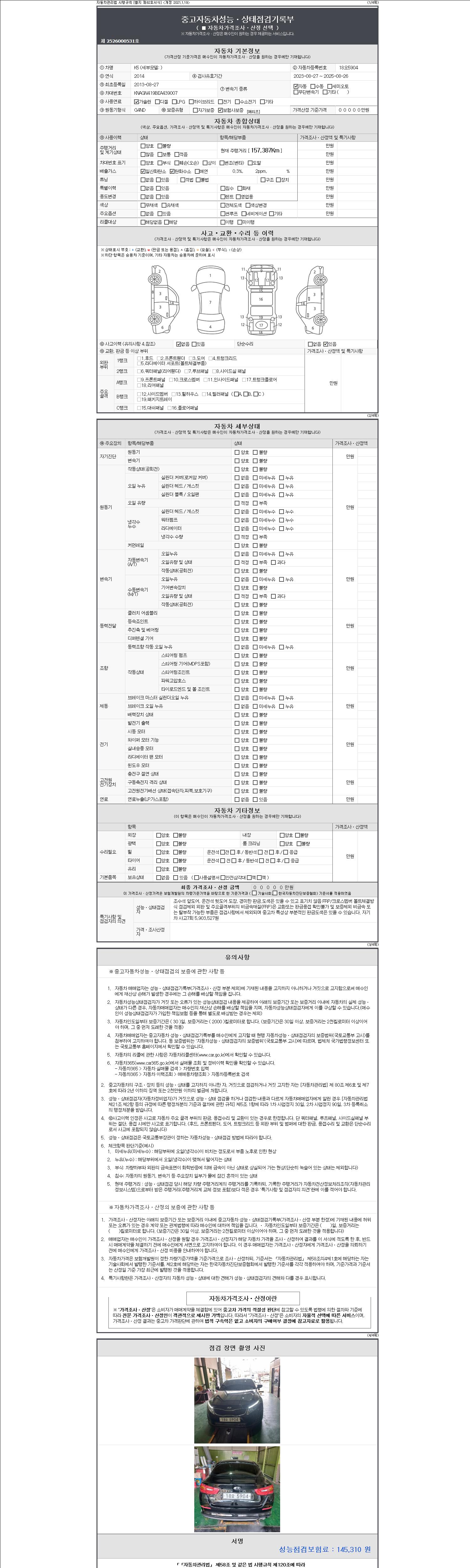 -중고자동차 매매업자를 통해 차량을 구입하실 경우 반드시 "중고자동차 성능, 상태점검 기록부"를 교뷰 받으셔야 하며, 매매업자는 반드시 의무 교부 하여야 압니다.