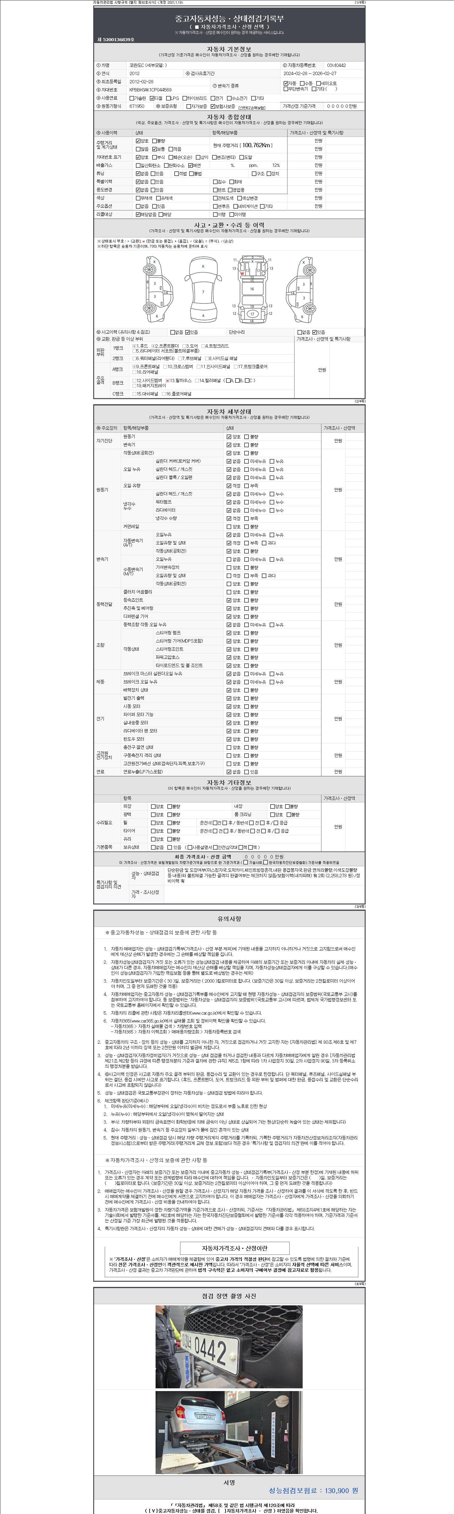 -중고자동차 매매업자를 통해 차량을 구입하실 경우 반드시 "중고자동차 성능, 상태점검 기록부"를 교뷰 받으셔야 하며, 매매업자는 반드시 의무 교부 하여야 압니다.