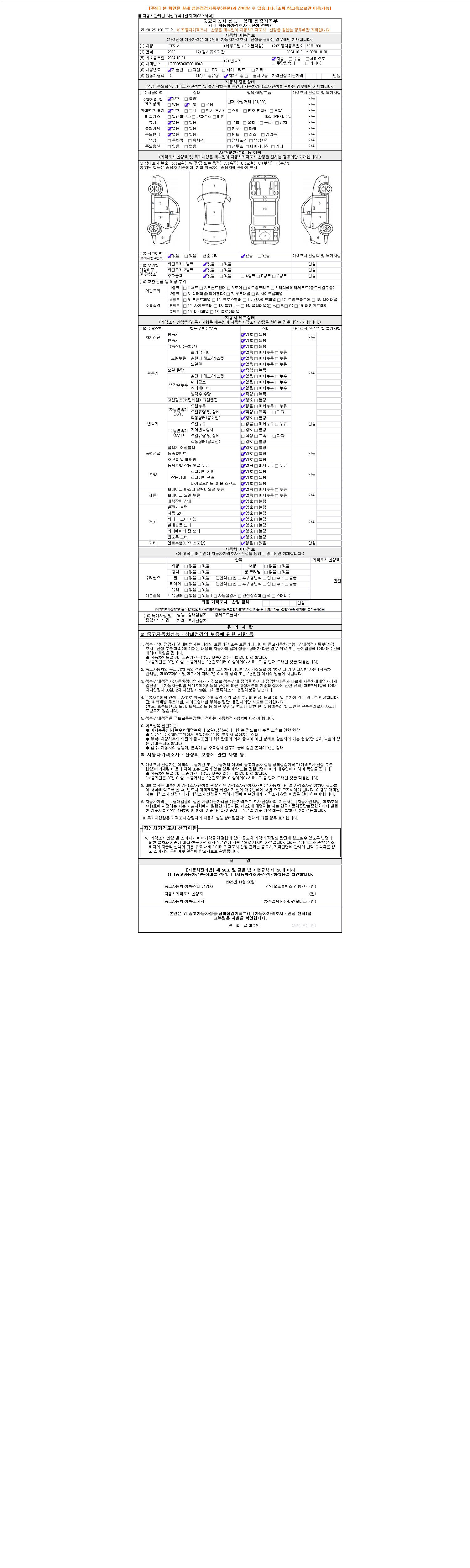 - 2. 차량 등록증이나 성능점검지 등을 상담자에게 요청및 확인하시고 사전에 미리 점검 하시기를 권유드립니다.