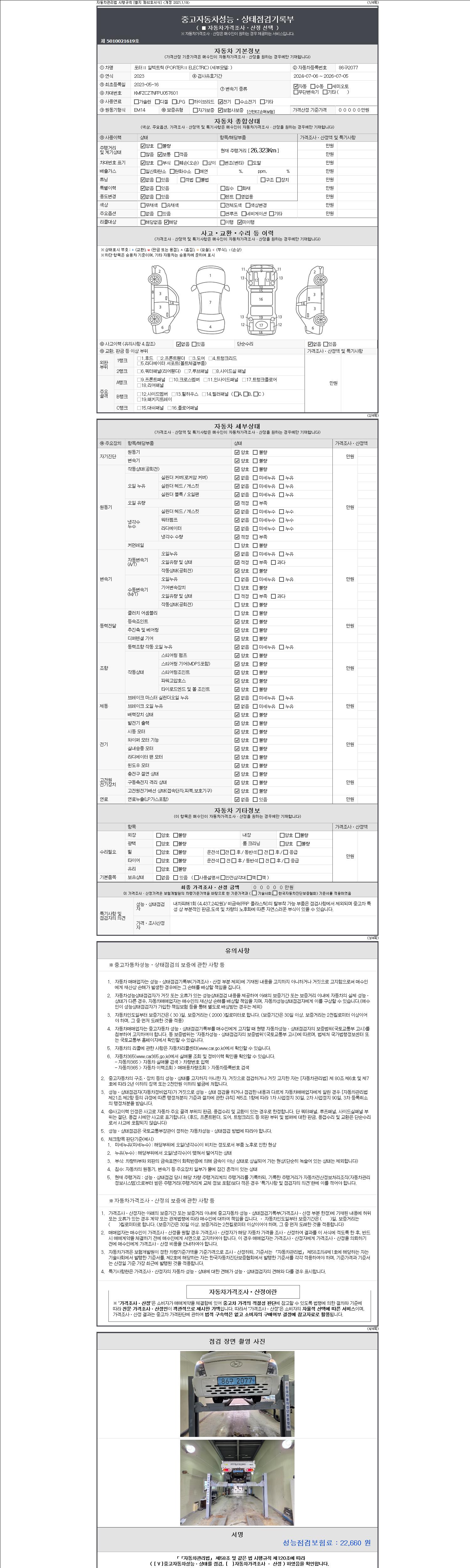 | 주행거리 | 26,323 km | 차량번호 | 86구2077 | 사고유무 | 성능기록부 참조 | 제시번호 | 제 2147483647 호 |