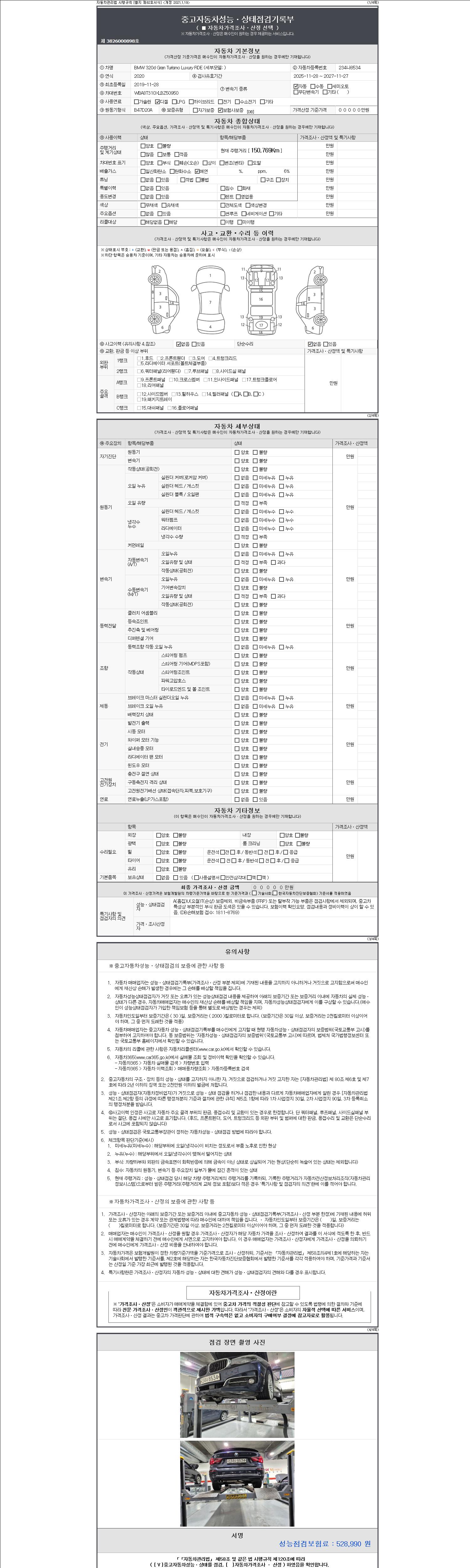 -중고자동차 매매업자를 통해 차량을 구입하실 경우 반드시 "중고자동차 성능, 상태점검 기록부"를 교뷰 받으셔야 하며, 매매업자는 반드시 의무 교부 하여야 압니다.