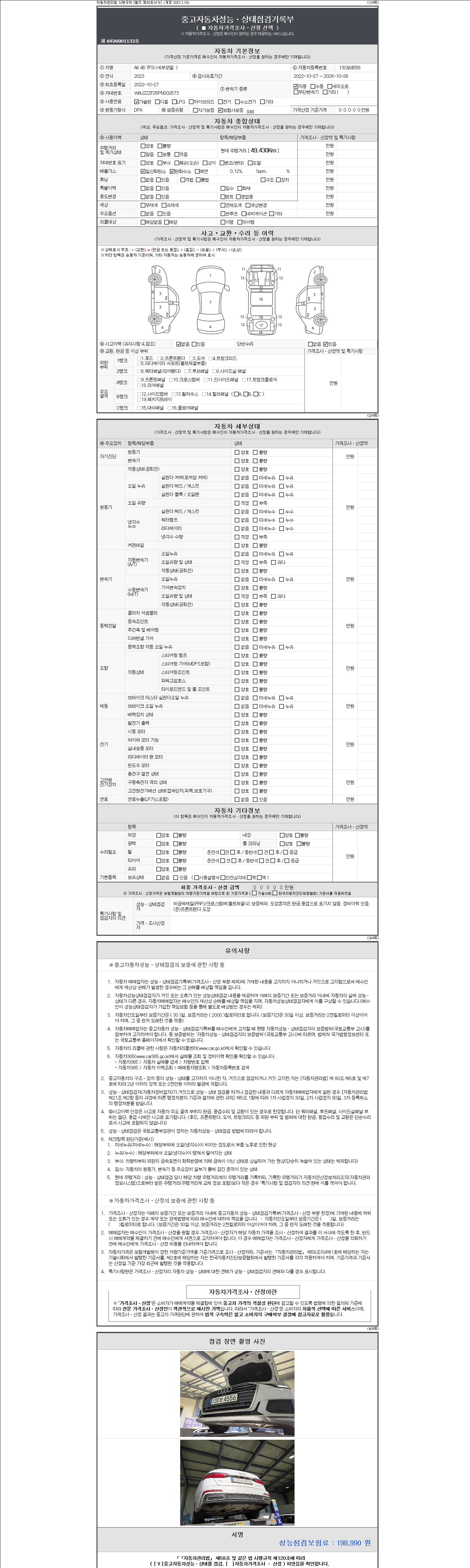 - 2. 차량 등록증이나 성능점검지 등을 상담자에게 요청및 확인하시고 사전에 미리 점검 하시기를 권유드립니다.
