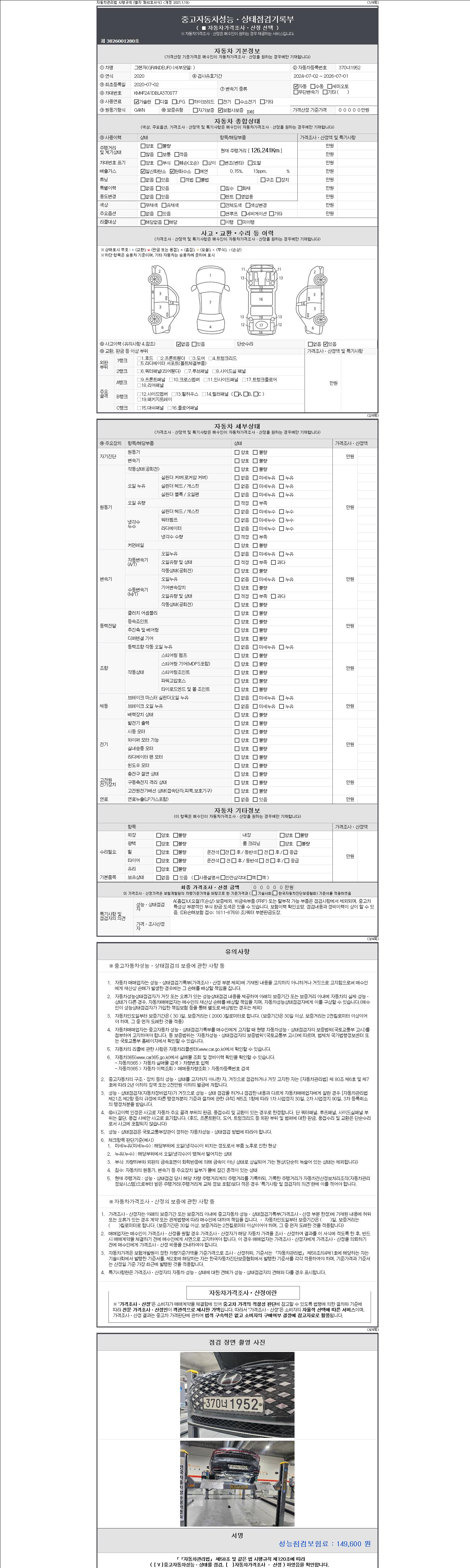 - 2. 차량 등록증이나 성능점검지 등을 상담자에게 요청및 확인하시고 사전에 미리 점검 하시기를 권유드립니다.