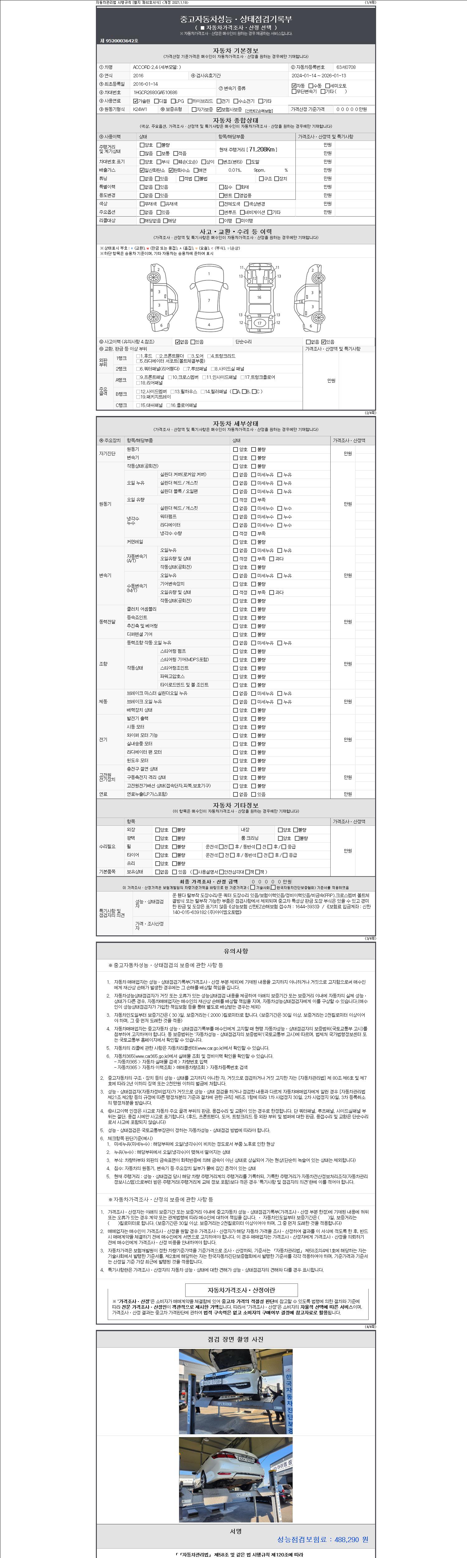 | 주행거리 | 71,208 km | 차량번호 | 63서0708 | 사고유무 | 성능기록부 참조 | 제시번호 | 제 2147483647 호 |