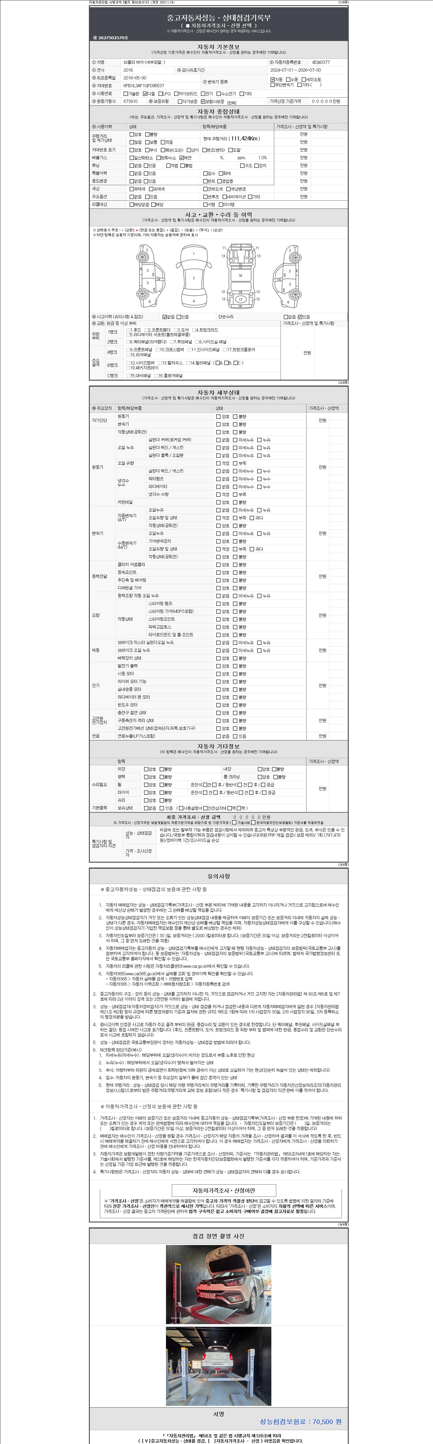 - 2. 차량 등록증이나 성능점검지 등을 상담자에게 요청및 확인하시고 사전에 미리 점검 하시기를 권유드립니다.