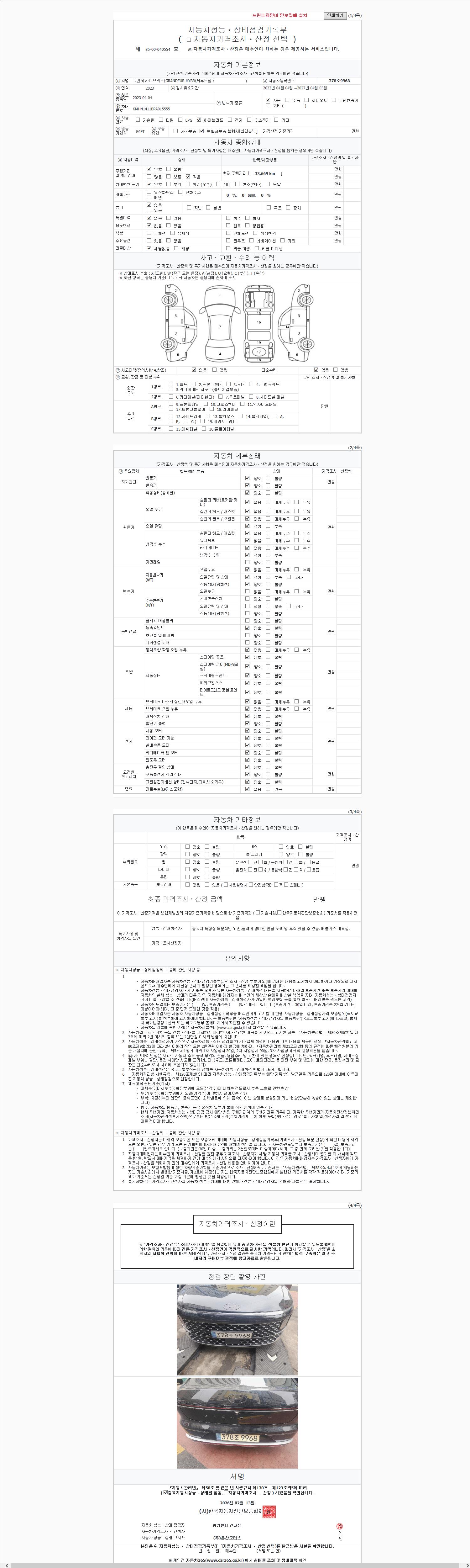 - 2. 차량 등록증이나 성능점검지 등을 상담자에게 요청및 확인하시고 사전에 미리 점검 하시기를 권유드립니다.