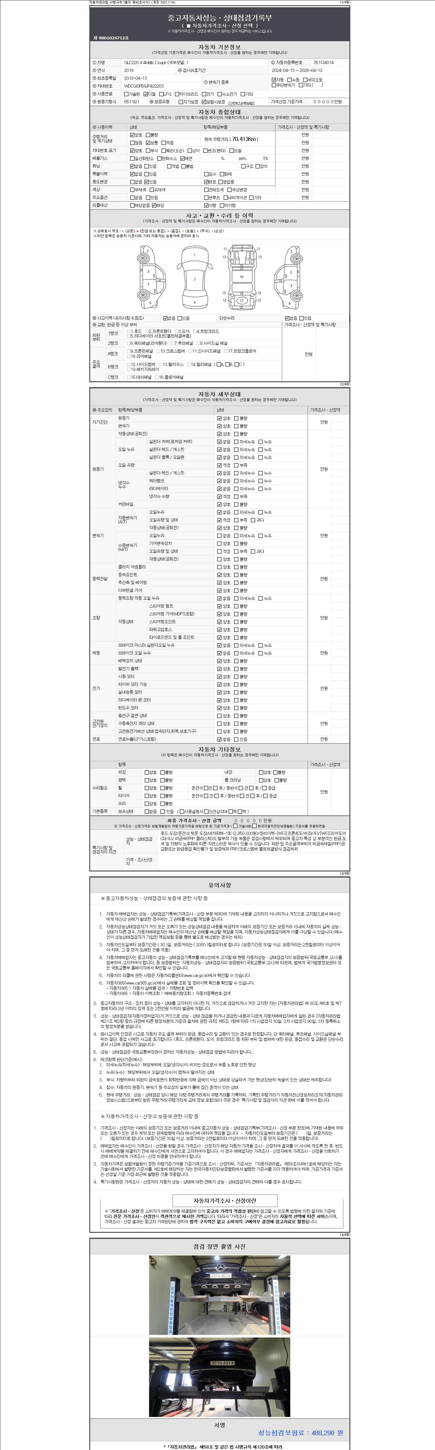 -중고자동차 매매업자를 통해 차량을 구입하실 경우 반드시 "중고자동차 성능, 상태점검 기록부"를 교뷰 받으셔야 하며, 매매업자는 반드시 의무 교부 하여야 압니다.