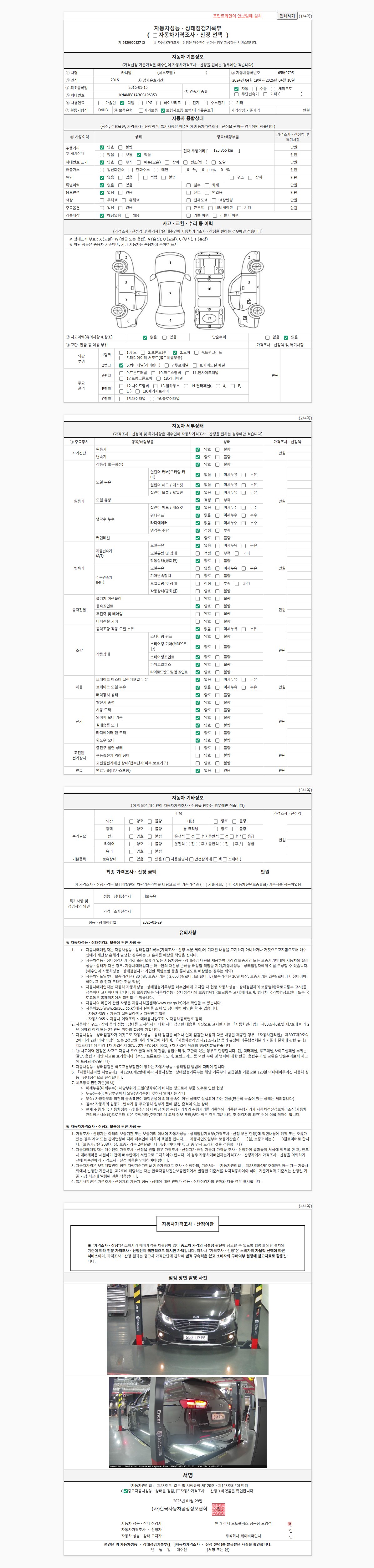 | 주행거리 | 125,356 km | 차량번호 | 65버0795 | 사고유무 | 성능기록부 참조 | 제시번호 | 제 2026012058 호 |